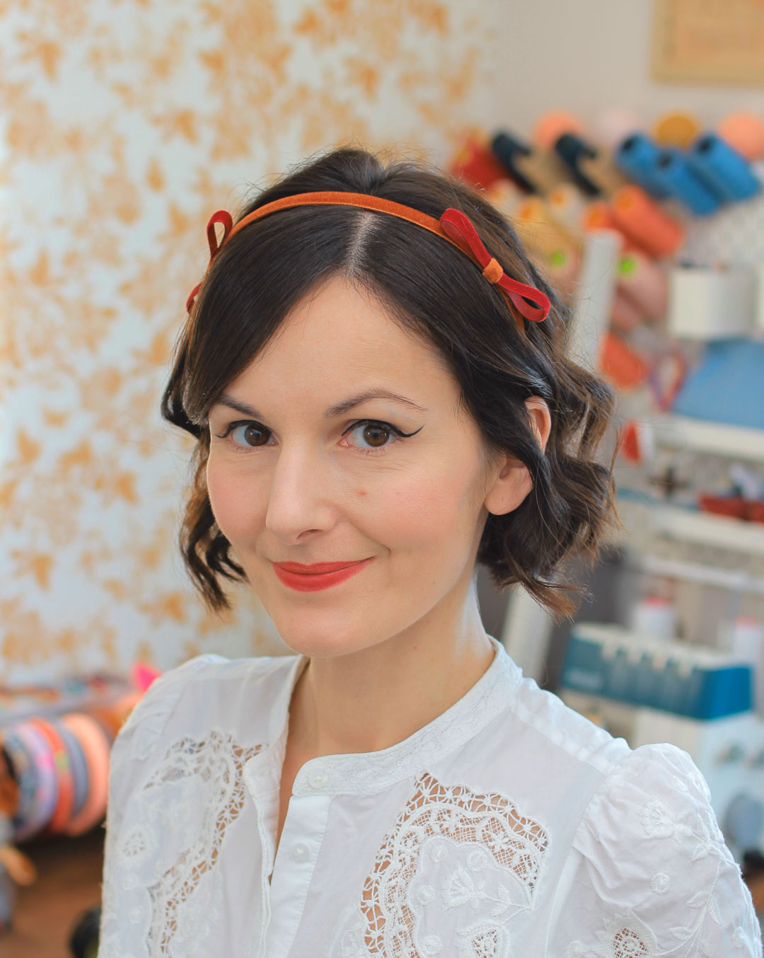 Le serre-tête Agathe, dans sa version rouille et bordeaux, est un serre-tête en velours français rouille orné, de chaque côté, d’un noeud en velours français bordeaux et rouille.