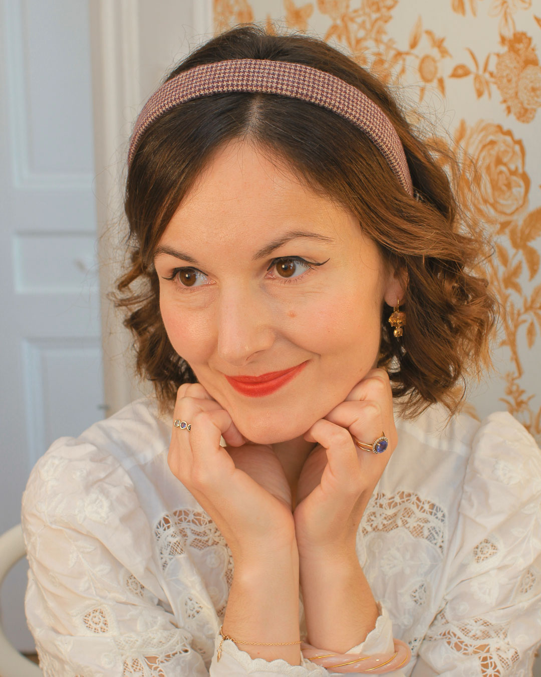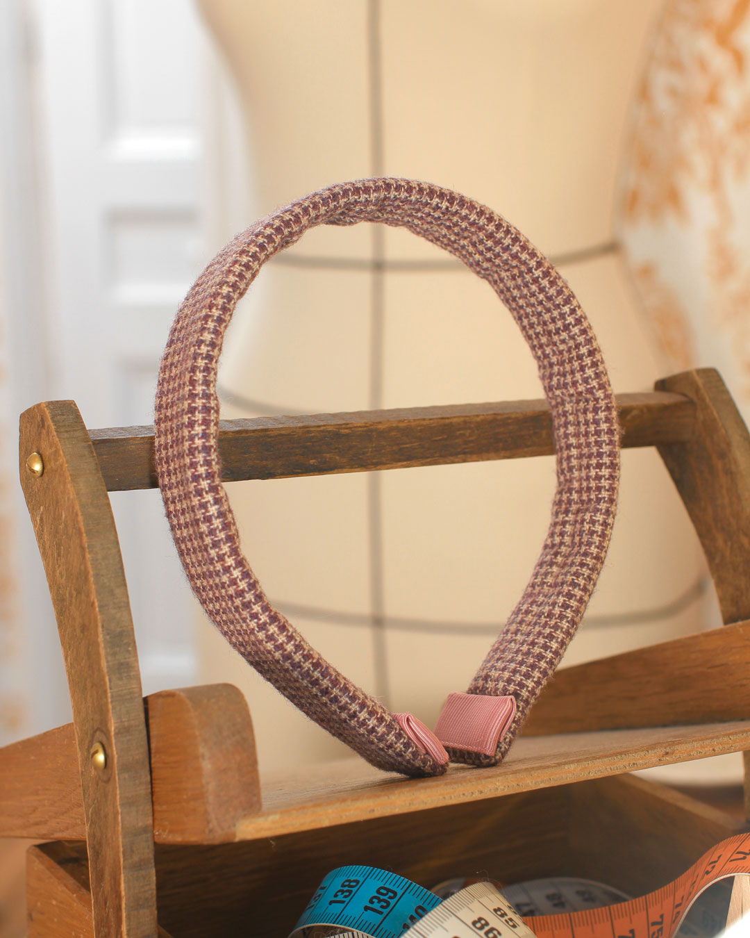 Le serre-tête Alice, dans sa version Cornelia Street, est confectionné dans un lainage petit pied de poule rose violet et parme. Il accessoirisera avec élégance et féminité toutes vos tenues.