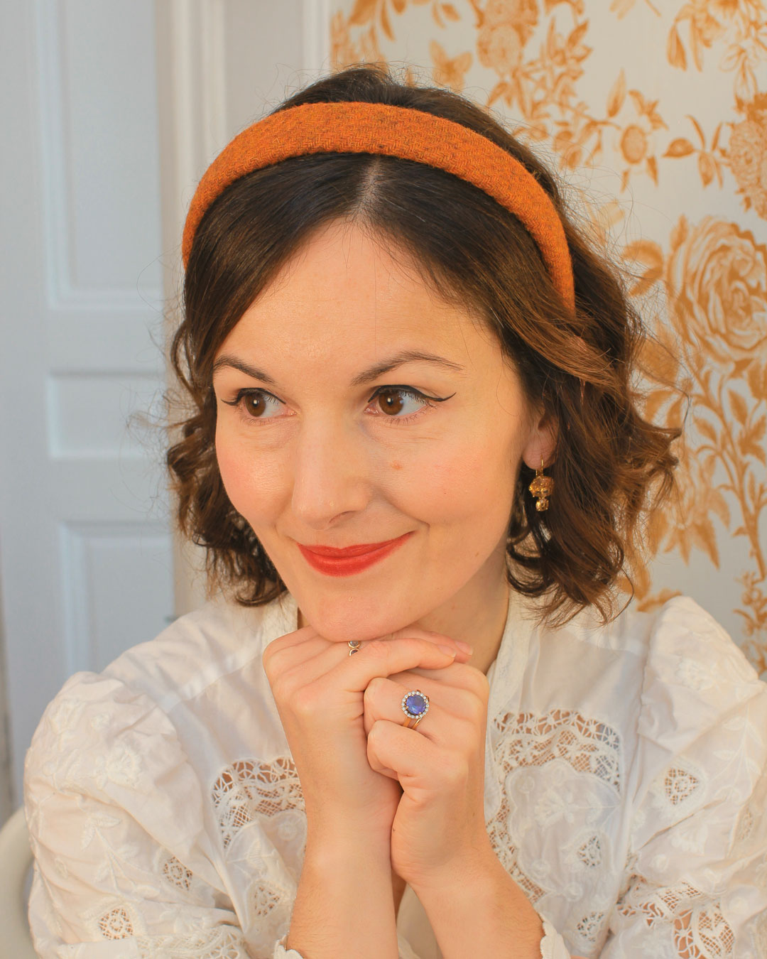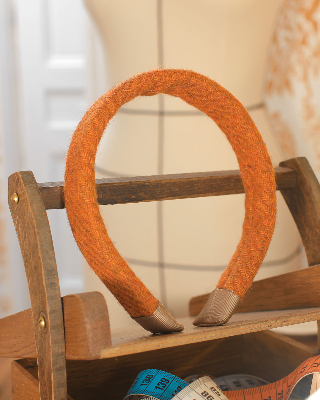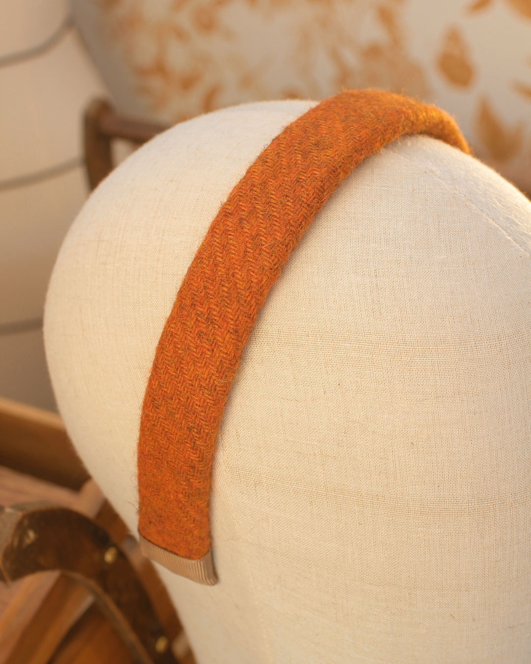 Le serre-tête Alice, dans sa version Frimas, apporte chaleur et lumière à nos tenues d’automne-hiver avec son lainage citrouille chiné.