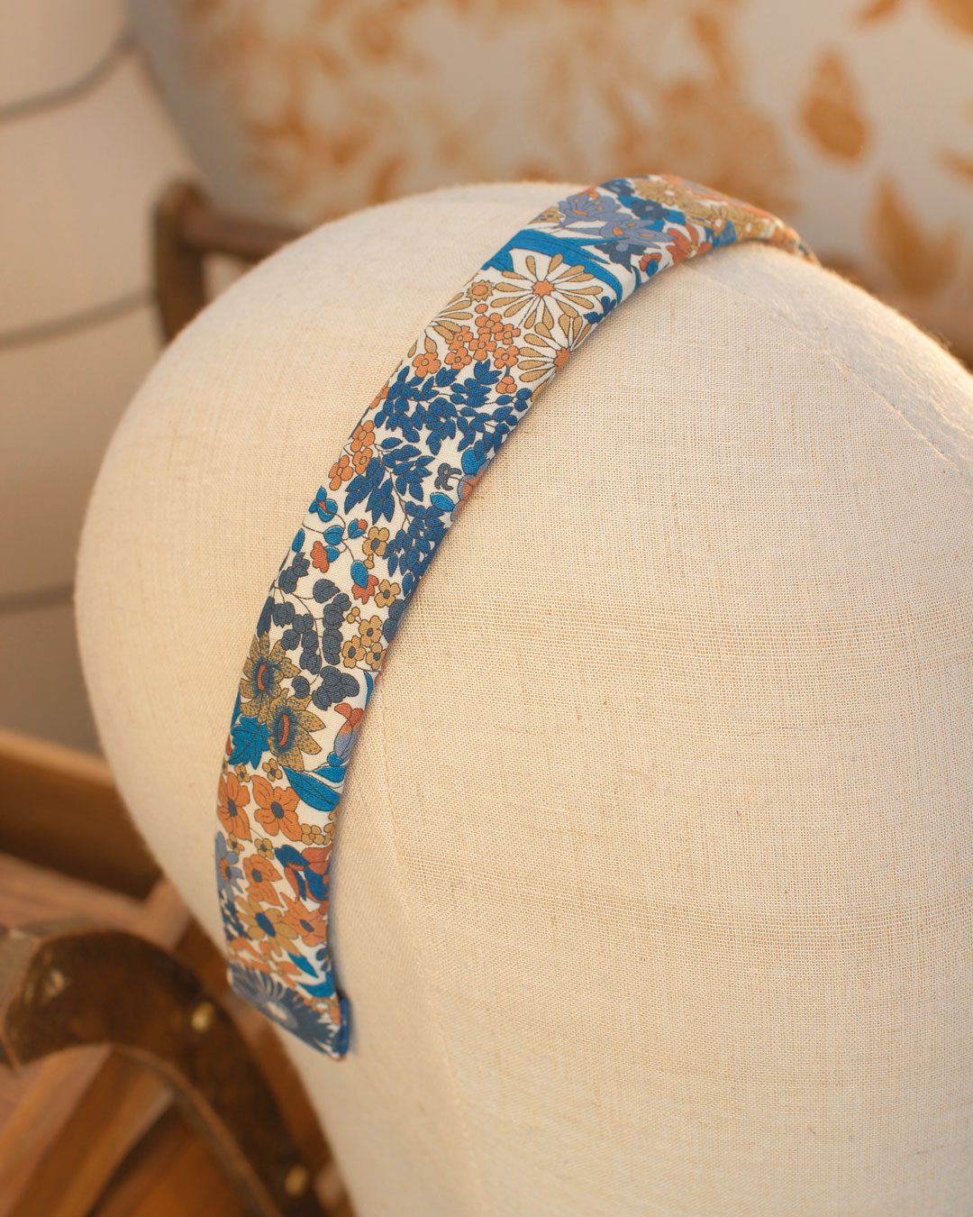 Le serre-tête Alice, dans sa version Liberty Margaret Annie bleu, est le fruit du mariage preppy à souhait entre les créations Marie-Joséphine et les tissus Liberty Fabrics. Ce tissu incroyable aux couleurs profondes présente un imprimé floral dans des tons bleus et bruns sur fond écru.