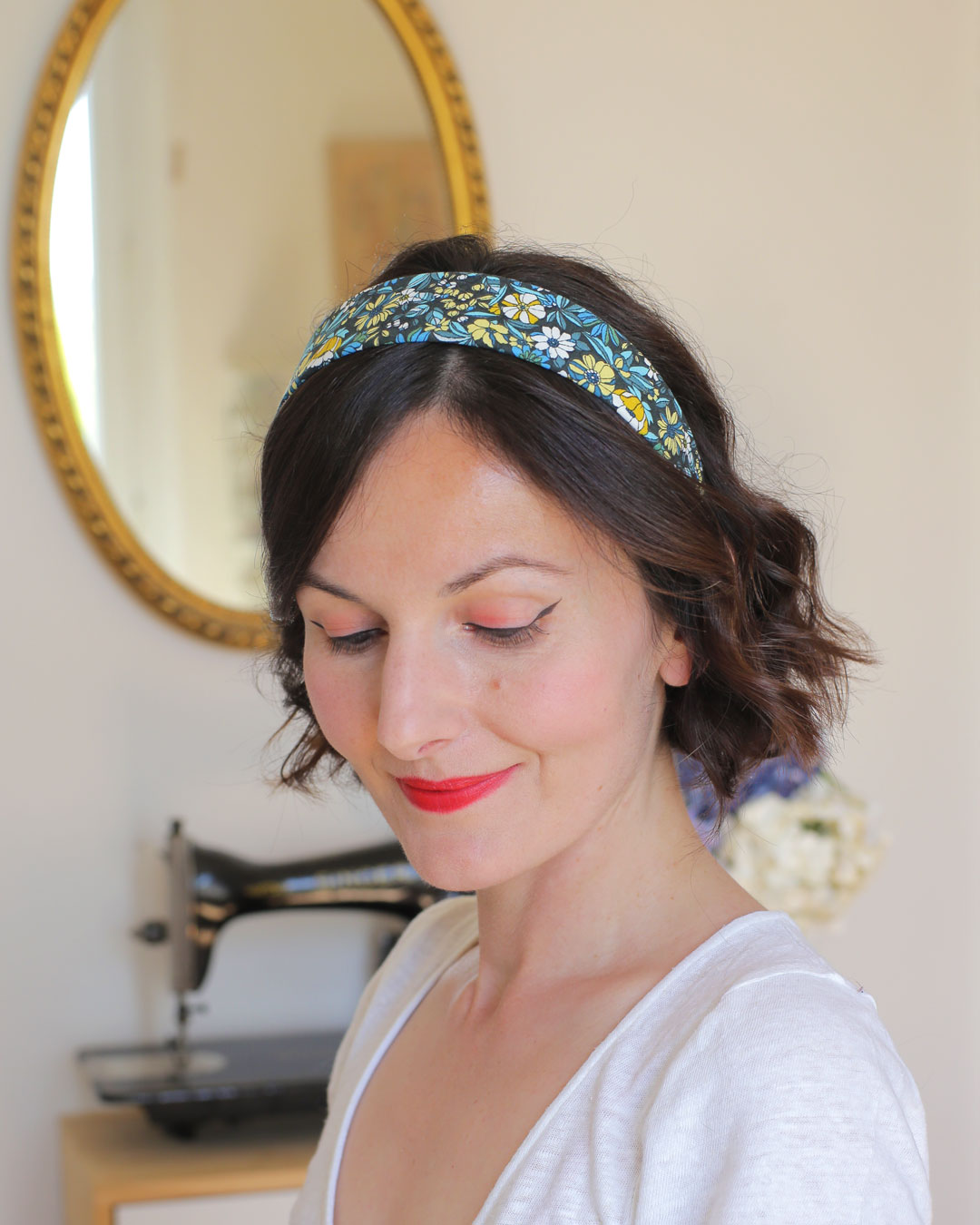 Avec ses 4 cm de largeur au maximum, qui en font un modèle plus large que le Alice, il donnera du caractère à vos coiffures ! Il me fait penser aux bandeaux portés dans les années 60. Je l’aurais bien vu porté par France Gall à cette époque.